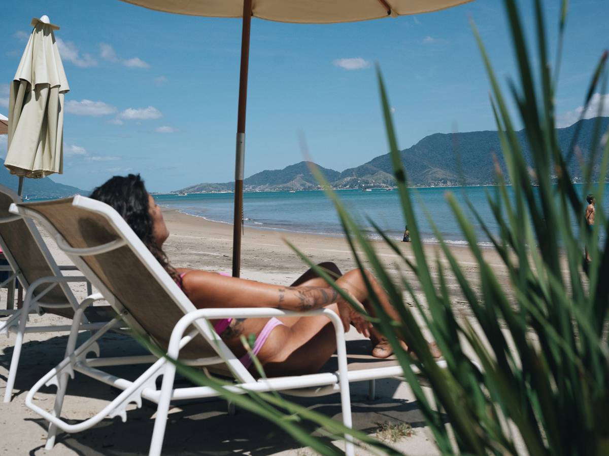 Varanda privativa, vista para o mar e banheira de imersão proporcionam momentos de relaxamento e conforto únicos.
