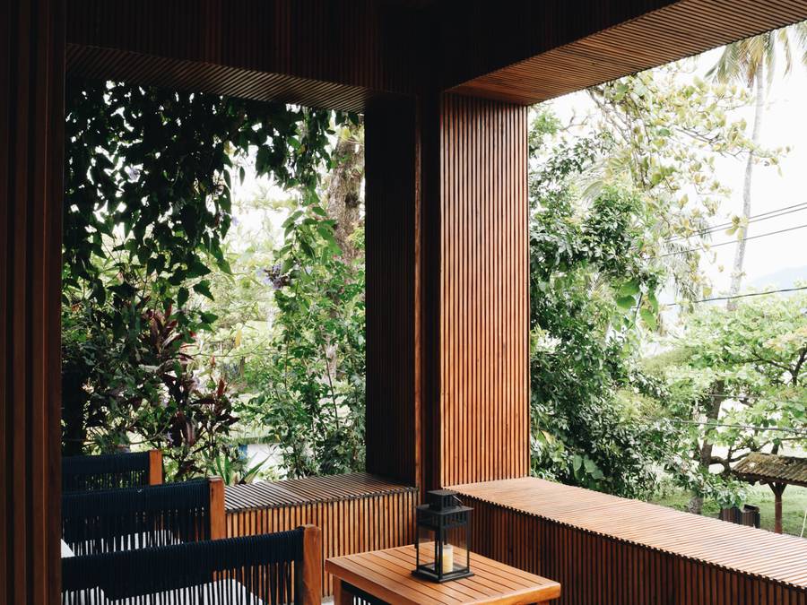 A varanda privativa é perfeita para desfrutar do pôr do sol ou tomar um café da manhã tranquilo.